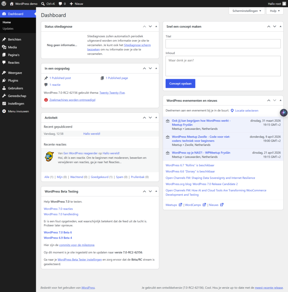 Ik heb vandaag de nightly build van WordPress 7.0 onder de loep genomen. Hoewel de officiële release pas gepland staat voor 9 april 2026, zijn de eerste contouren van “Phase 3” (Collaboration) al goed zichtbaar. Ik kon het niet laten om alvast de eerste bevindingen met jullie te delen.
